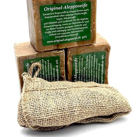 Eine hochqualitative Alepposeife hergestellt in Aleppo/ Syrien die als Haarwaschseife sehr gut geeignet ist. Natürlich auch für die tägliche Reinigung von Gesicht und Körper, sowie zum Rasieren sehr zu empfehlen.
